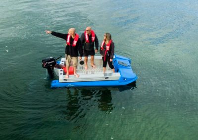 The combination of a wider (1.92m) aluminium superstructure attached to tough polyethylene hulls, provides a platform unlike any other in its class. The incredible stability and shallow draft makes this boat an excellent multi-purpose platform. Ideal for 2 adults and 2 children in sheltered waterways.